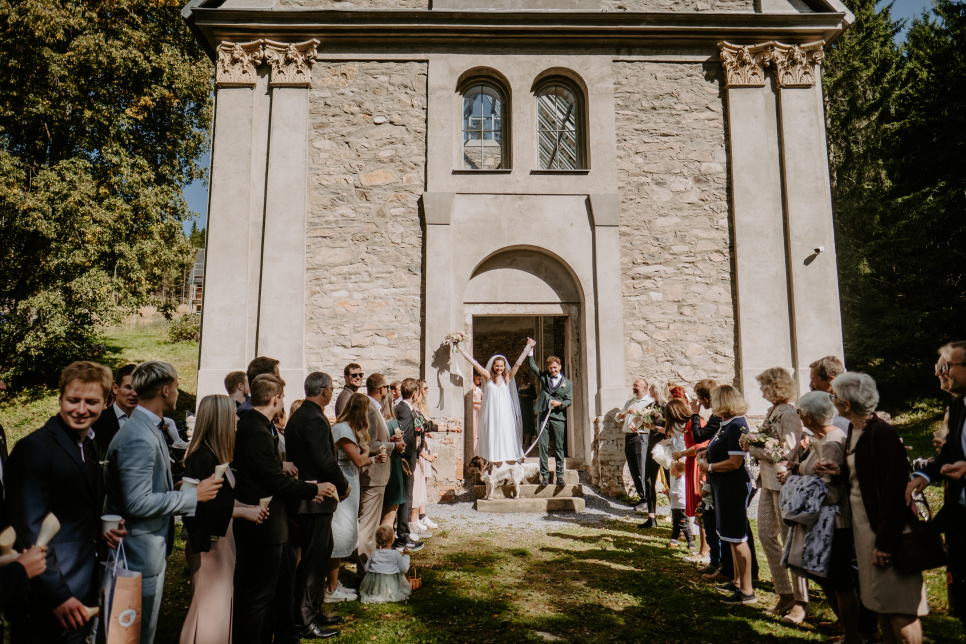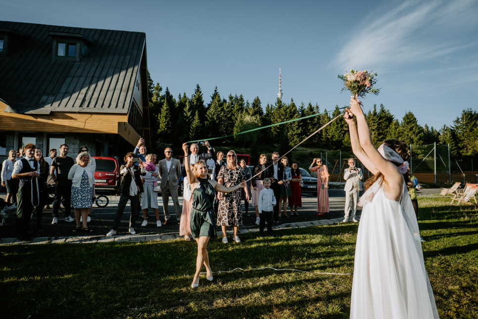 Krásná svatba v nádherném prostředí, přímo na úbočí Pradědu.